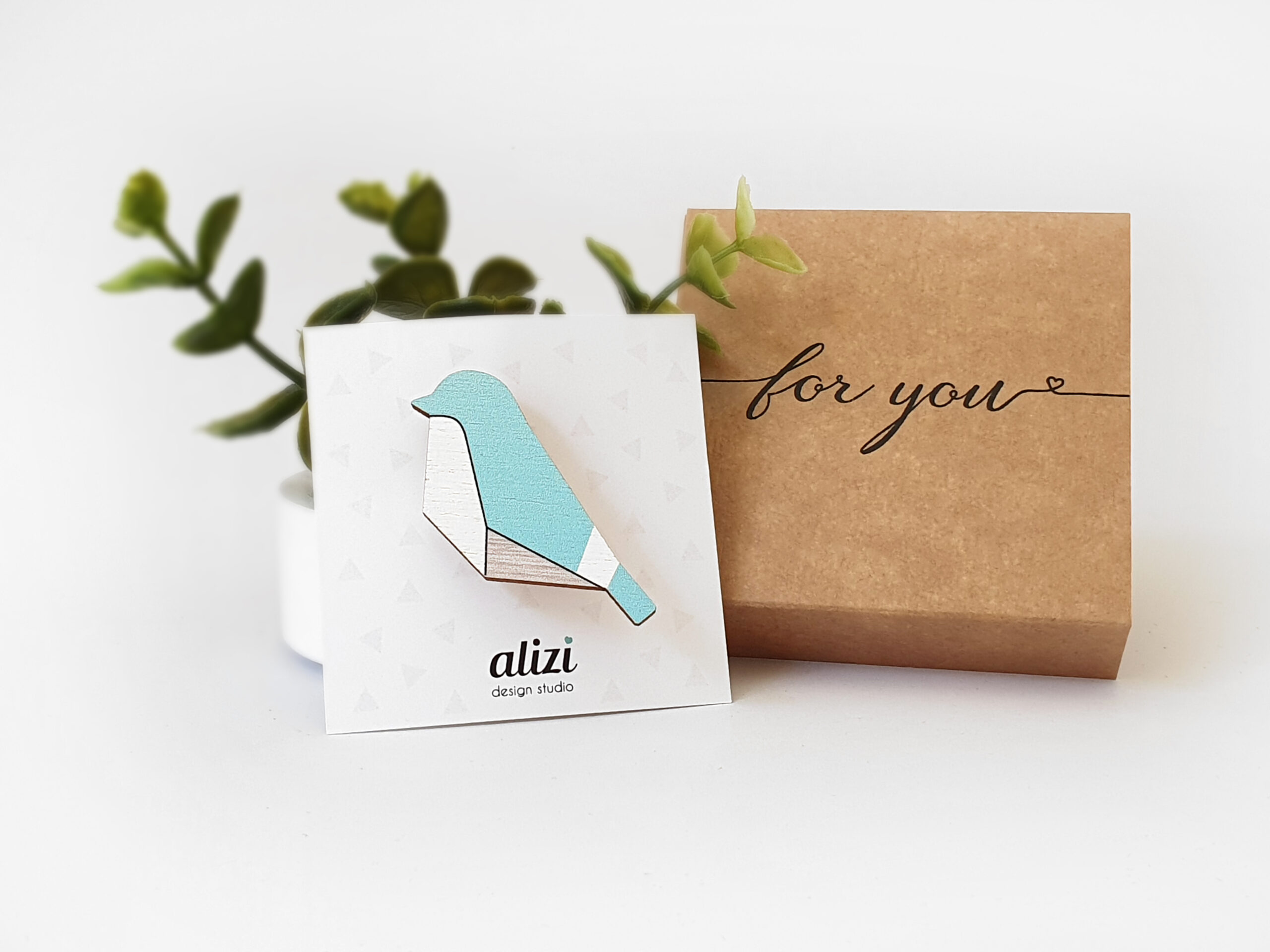 Rankų darbo medinė brošiūra Šviesiai mėlyna-BROŠETĖ PASIRUOŠTA – užsakymas pagal užsakymą
