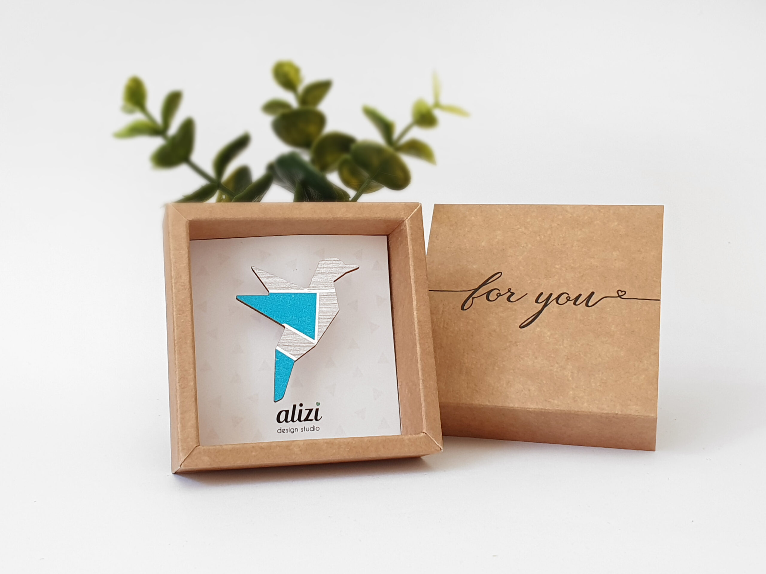 Brošiūra supakuota į gražią rudą kartoninę dėžutę, kuri atsidaro degtukų dėžutės sistema, o viršuje yra užrašas Jums – tai graži ir įsimintina dovana, kuri primins apie Jus kiekvieną kartą, kai gavėjas dėvės dovanų gautą gražų papuošalą