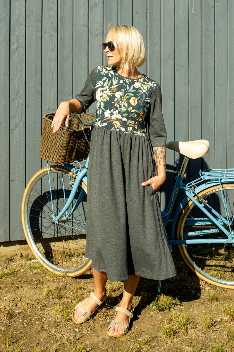 Mõnus ja pehme taskutega figuurisõbralik kleit on disainitud ja õmmeldud käsitööna Eestis.