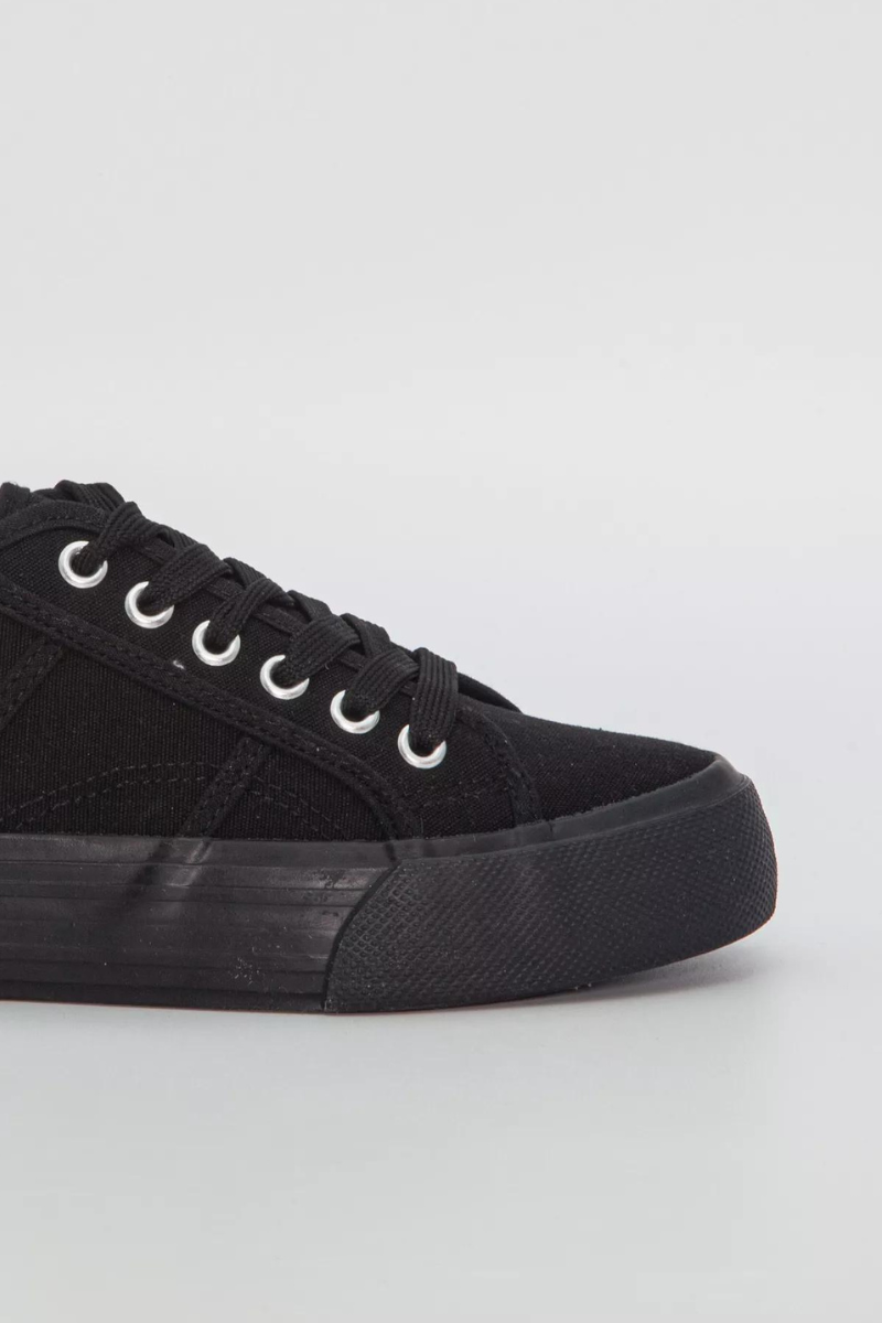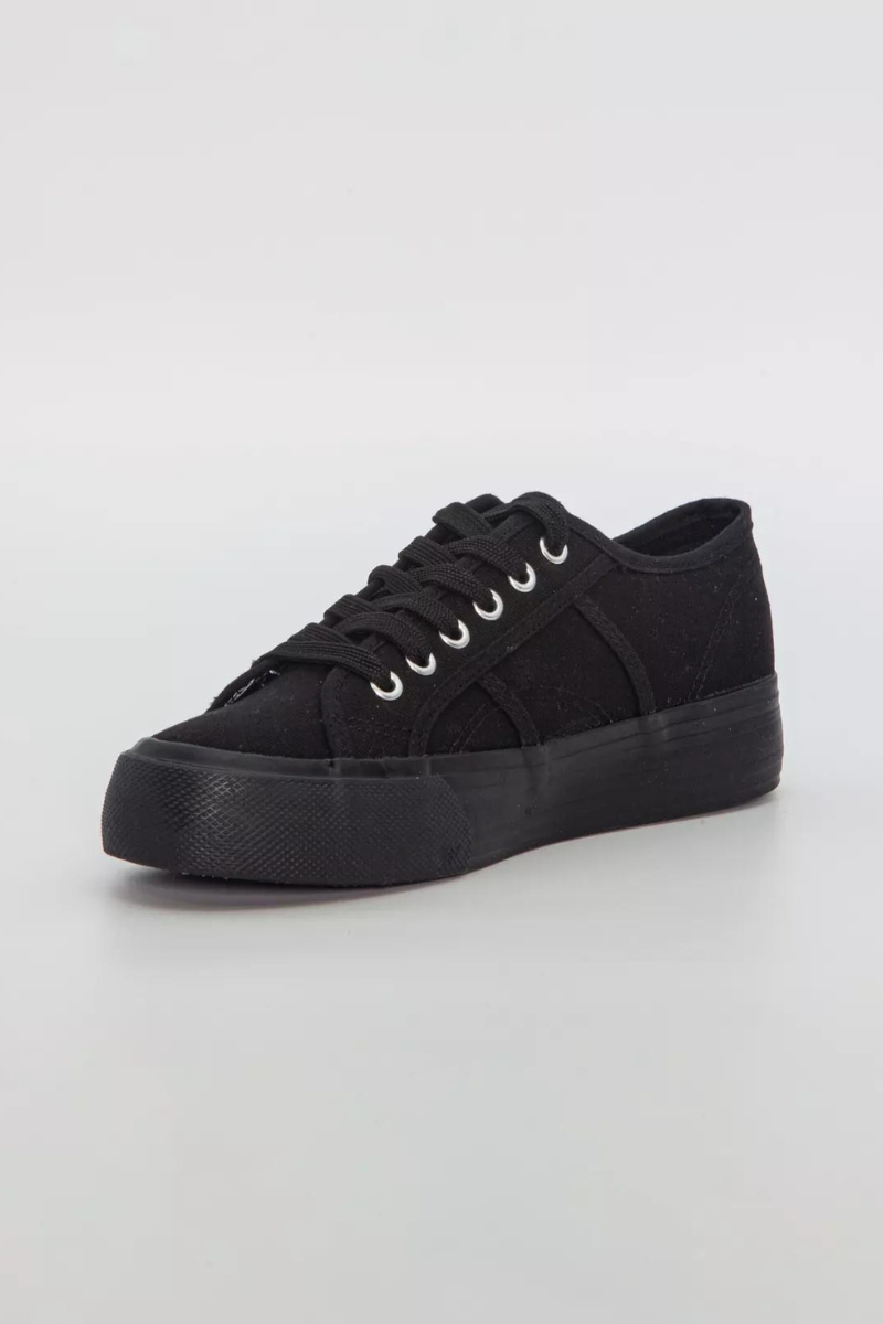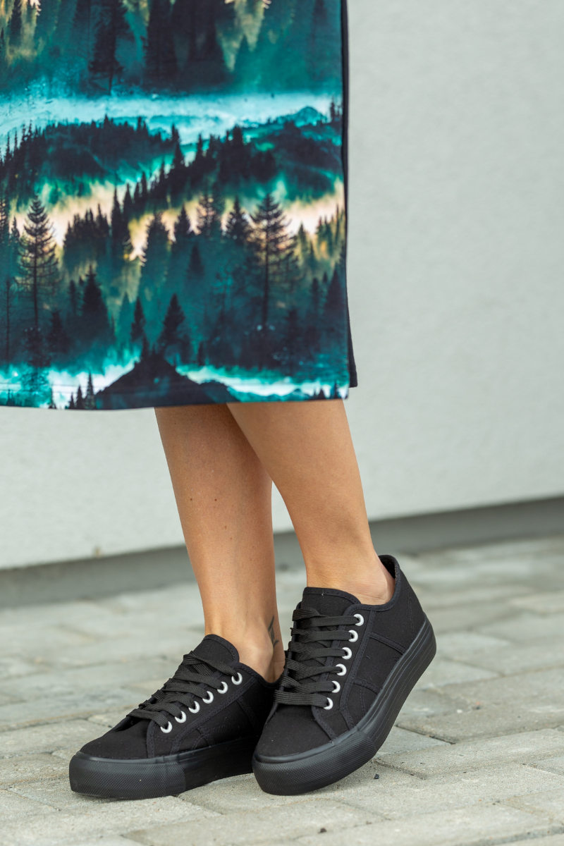 Paksema tallaga mustad kangast naiste tennised on ideaalsed jalatsid kevadel, suvel ja sügisel kandmiseks.