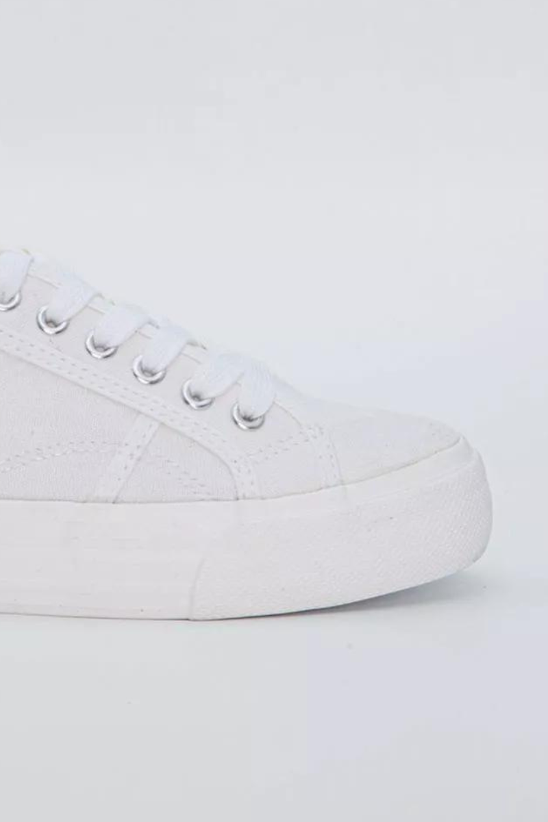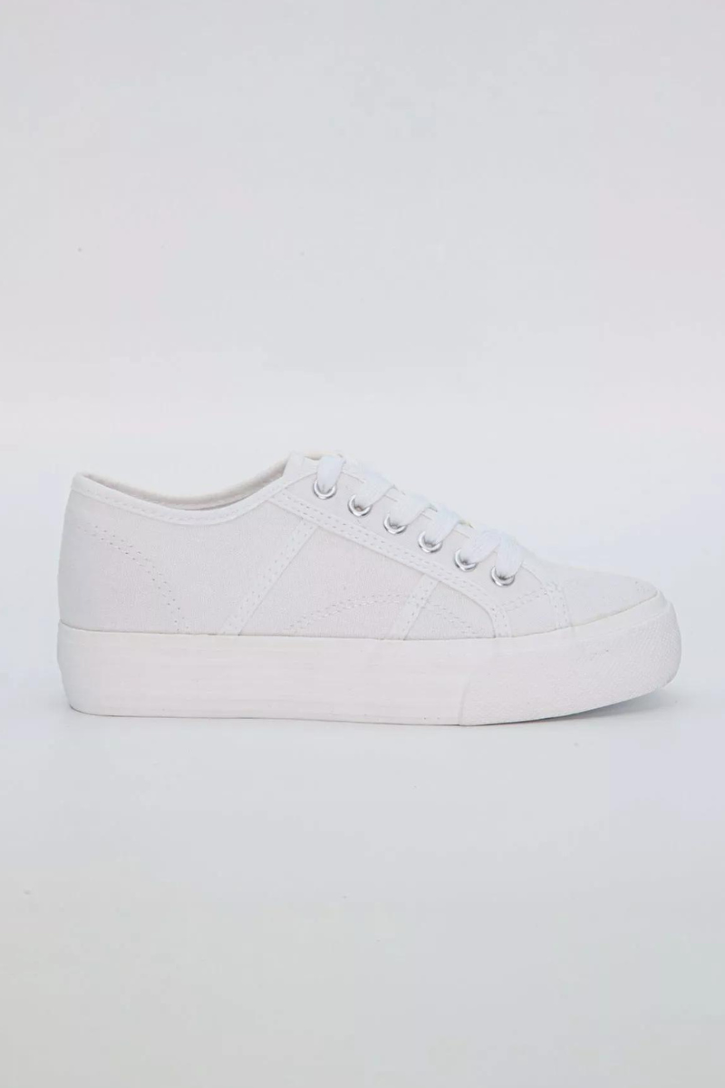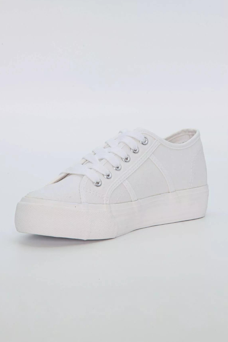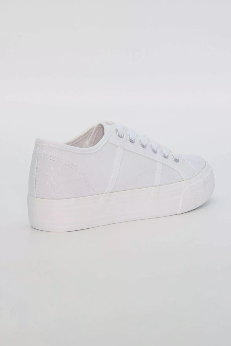 Paksema tallaga valged kangast naiste tennised on ideaalsed jalatsid kevadel, suvel ja sügisel kandmiseks.