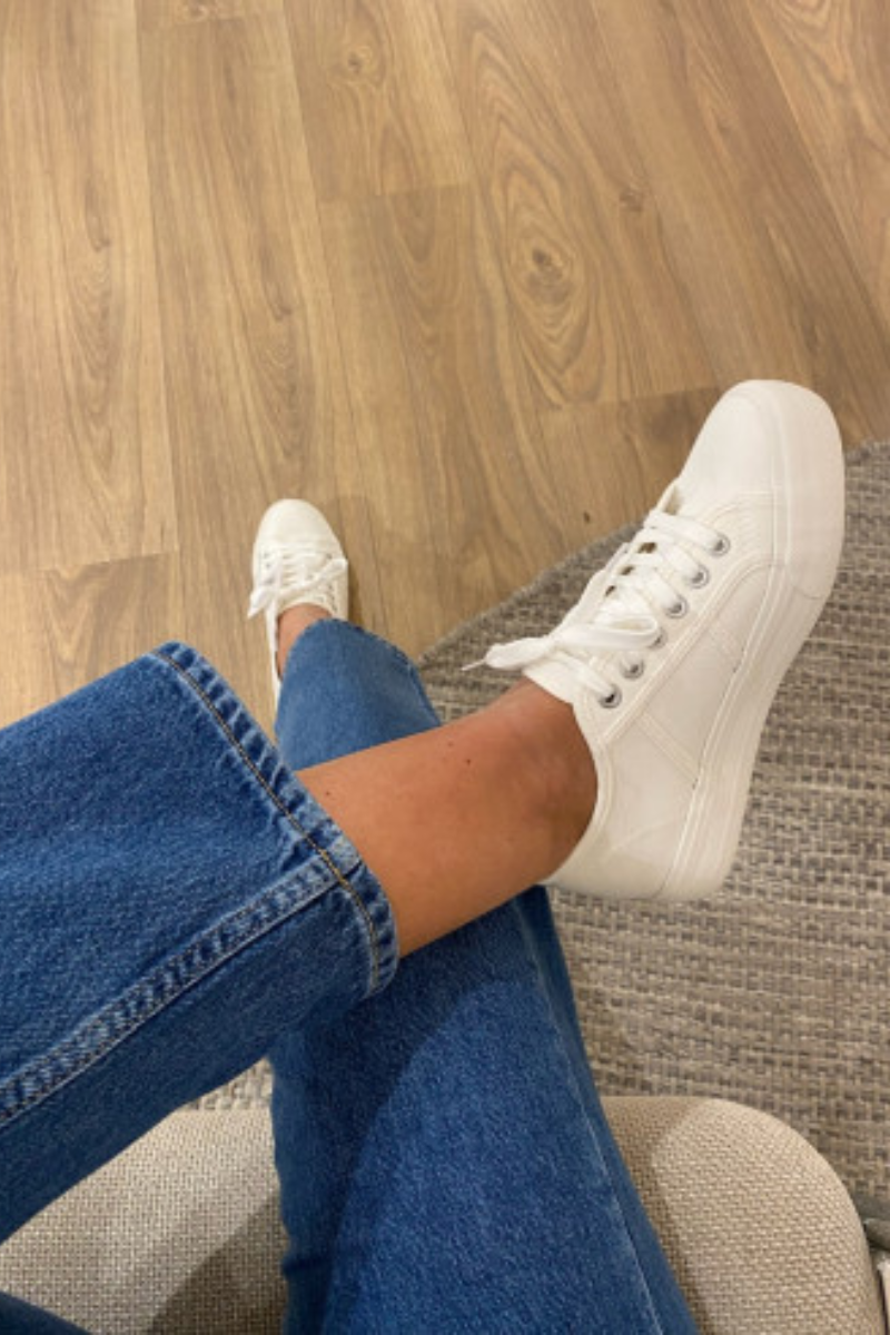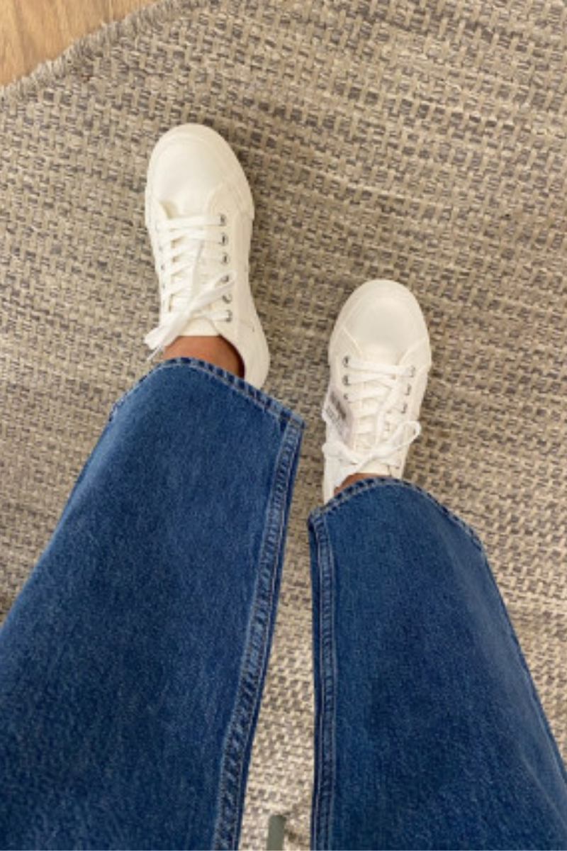 Kanna pükste või kleidiga- klassikalisi valgeid tenniseid on lihtne sobitada erineva riietus juurde.