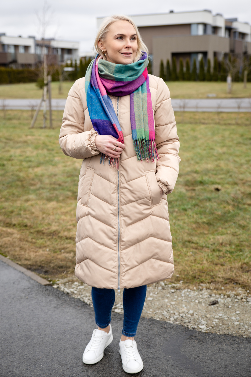 Mõnus suur ja värvikas sall hoiab sinu kaela sügis-talvisel ajal mõnusalt soojas