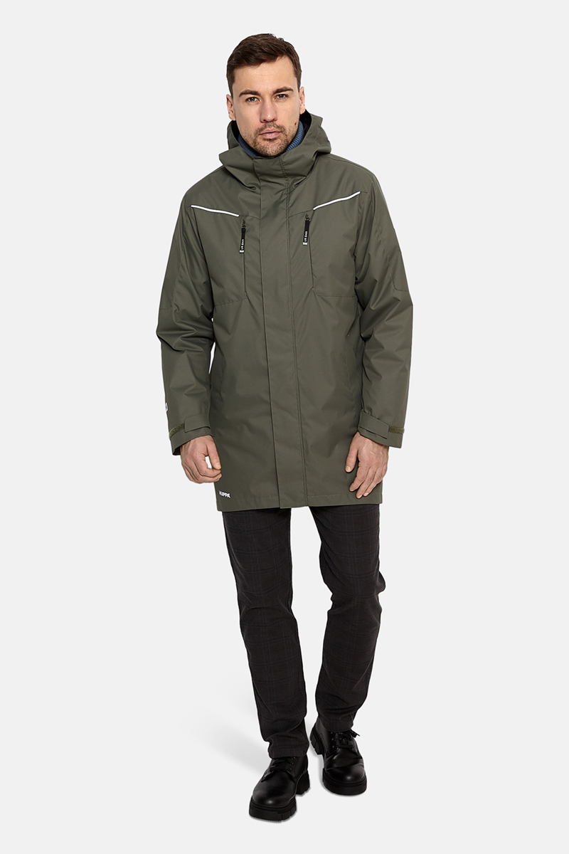 Meeste vee-ja tuulekindel 40 g soojustusega kevad-sügisparka. Hingav pealiskangas. Parka sisepool pehmest voodrikangast. Reguleeritav kapuuts ja varrukaotsad. Varrukaotstes soonikmansett. Vettpidavad teibitud õmblused. Pealiskangal helkurdetailid.Parka kinnitus eest on luku ja krõpsudega.