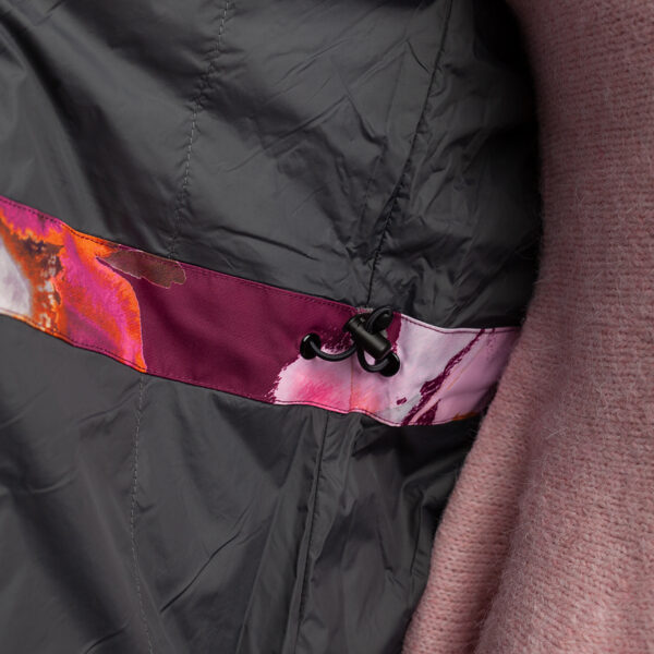 Lõige on naiselik ja kergelt taljesse töödeldud tänu reguleeritavale pingutusnöörile. Kui oled kahe suuruse vahel, soovitame valida suurema, et alla mahuks kihte.