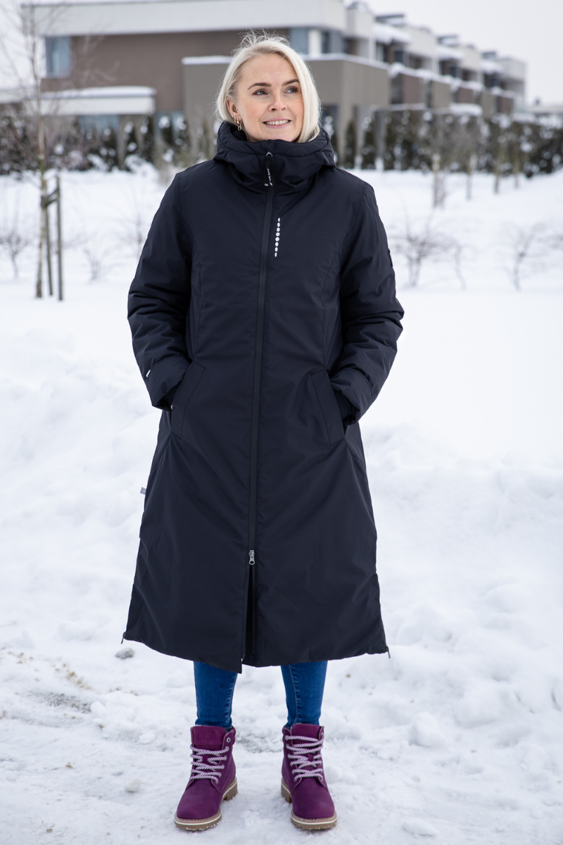 Pikk, soe ja funktsionaalne Huppa naiste mantel Eira on loodud selleks, et pakkuda mugavust ja kaitset külmal aastaajal. See stiilne pikk talvemantel hoiab nii keha, kui ka sääred mõnusalt soojas ning on suurepärane valik igapäevaseks kandmiseks – olgu selleks tööle minek, linnas jalutamine või koeraga õhtune väljas käik.