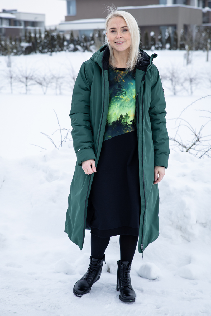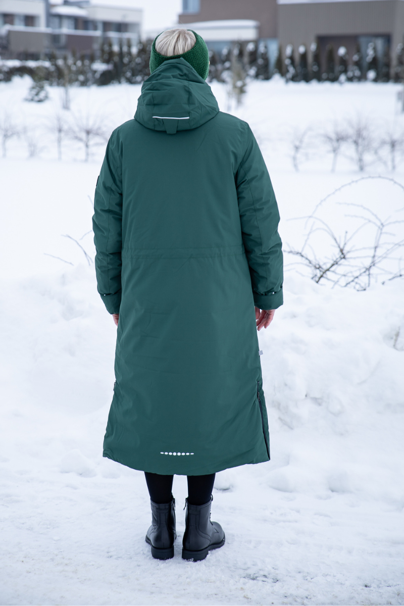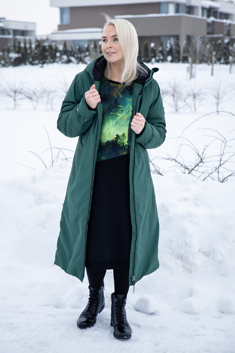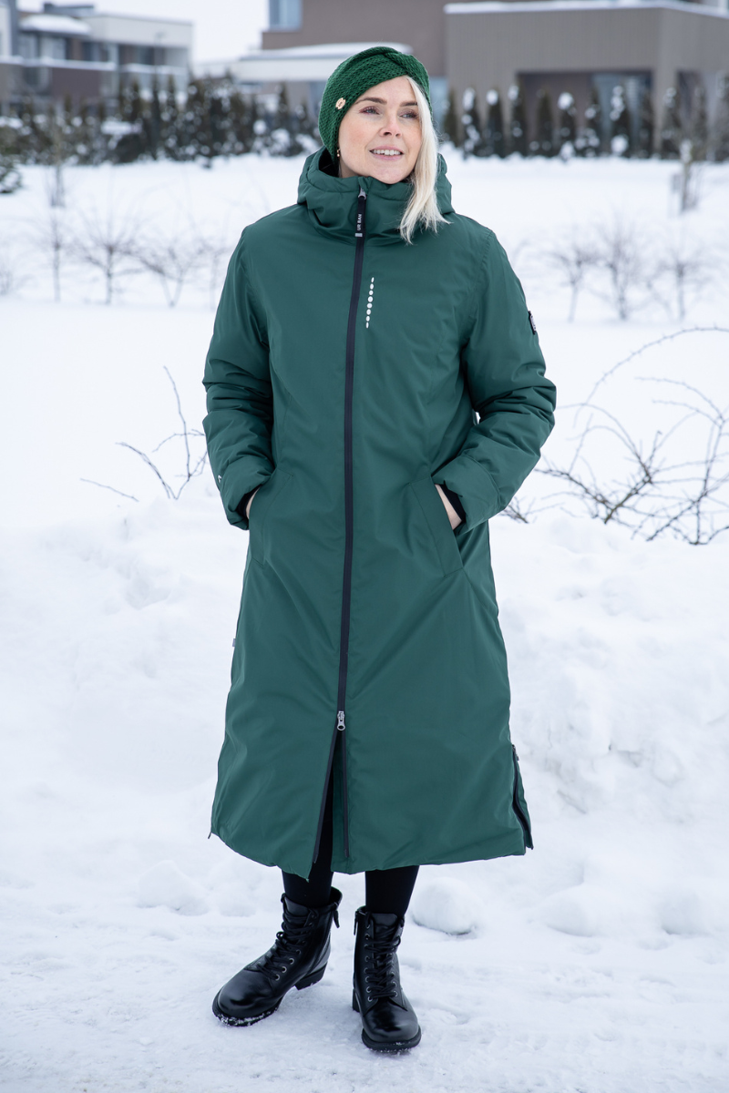 Pikk ja funktsionaalne naiste talvemantel Eesti talveks