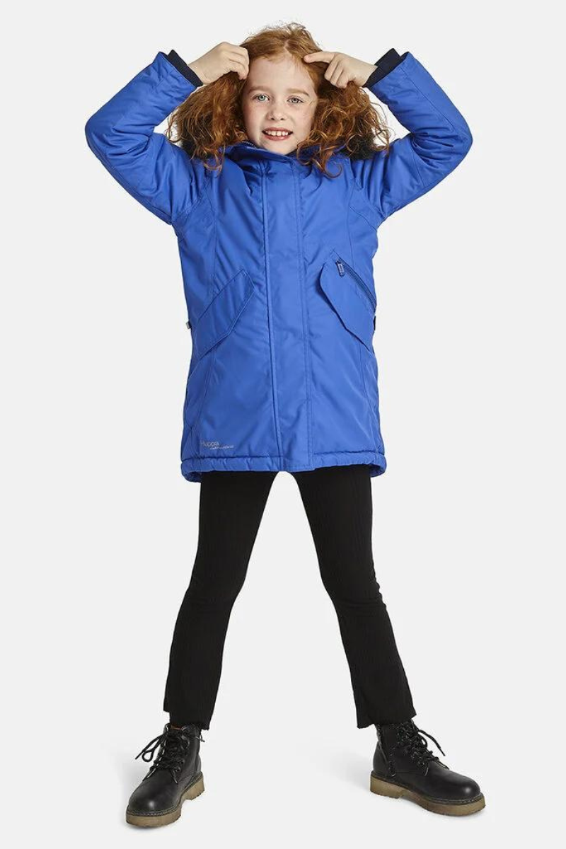 Mõnus soe ja ilmastikukindel talveparka tüdrukutele sügis-talviseks hooajaks.Parka on tuule- ja veekindel ning hingav pealiskangas on parimate tehniliste näitajatega. Pehme karvane lambavillane lisa vooder rindkere ümber on mõnus ja soe. Parka soonikust sisemised mansetid varrukates ja teibitud õmblused hoiavad lapse sooja ja kuivana ka mängides ja aktiivselt sporti tehes. Parimaks nähtavuseks pimedal ajal on parkale lisatud helkurdetailid nii ees, taga kui ka varrukal. Kapuutsi kunstkarvast äär kinnitub luku abil ja on lihtsasti eemaldatav. Esitasku ja varrukad on varustatud lukuga ning vöökoht on selja pealt seestpoolt reguleeritav. Kahe mõnusa mahuka pealistasku klapid on suletavad magnettrukiga. Samuti on parkal ka sisemine lukuga tasku, kuhu vajadusel saab panna hoiule näiteks telefoni või muid väiksemaid asju. Parka esilukk on kahepoolselt avanev, mis teeb omakorda parkaga istumise mugavamaks. Stiilne ja soe parka talviseks hooajaks.