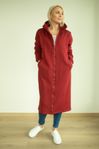 YEMI DISAIN bordoopunane pikk kapuutsiga pusa-jakk- L ja XL- KOHE LAOS