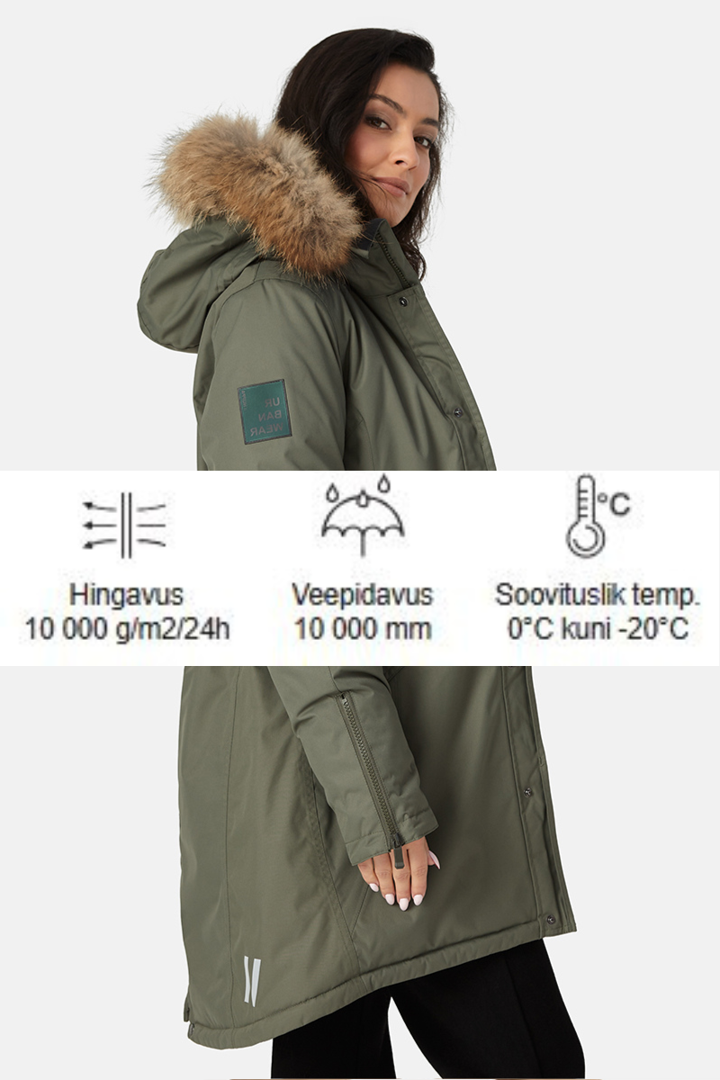 Tänu 200 g soojustusele ja karvasele selja ja kapuutsi sisevoodrile sobib see parka ideaalselt