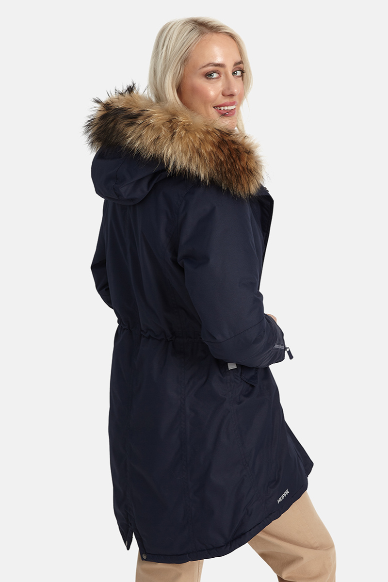 Huppa naiste talveparka Vivian 1 tumesinine naturaalkarvaga 200 gr soojustusega-kohe laos