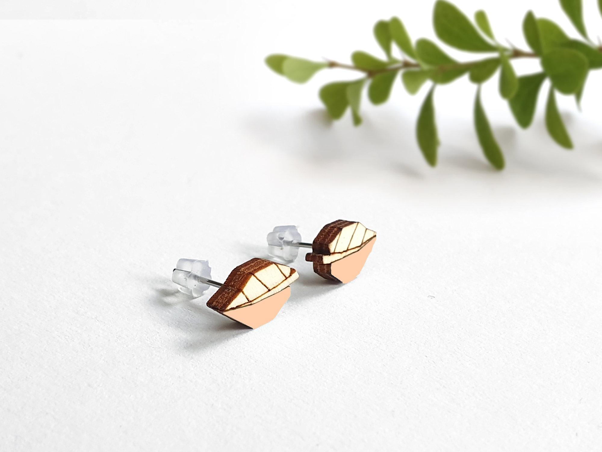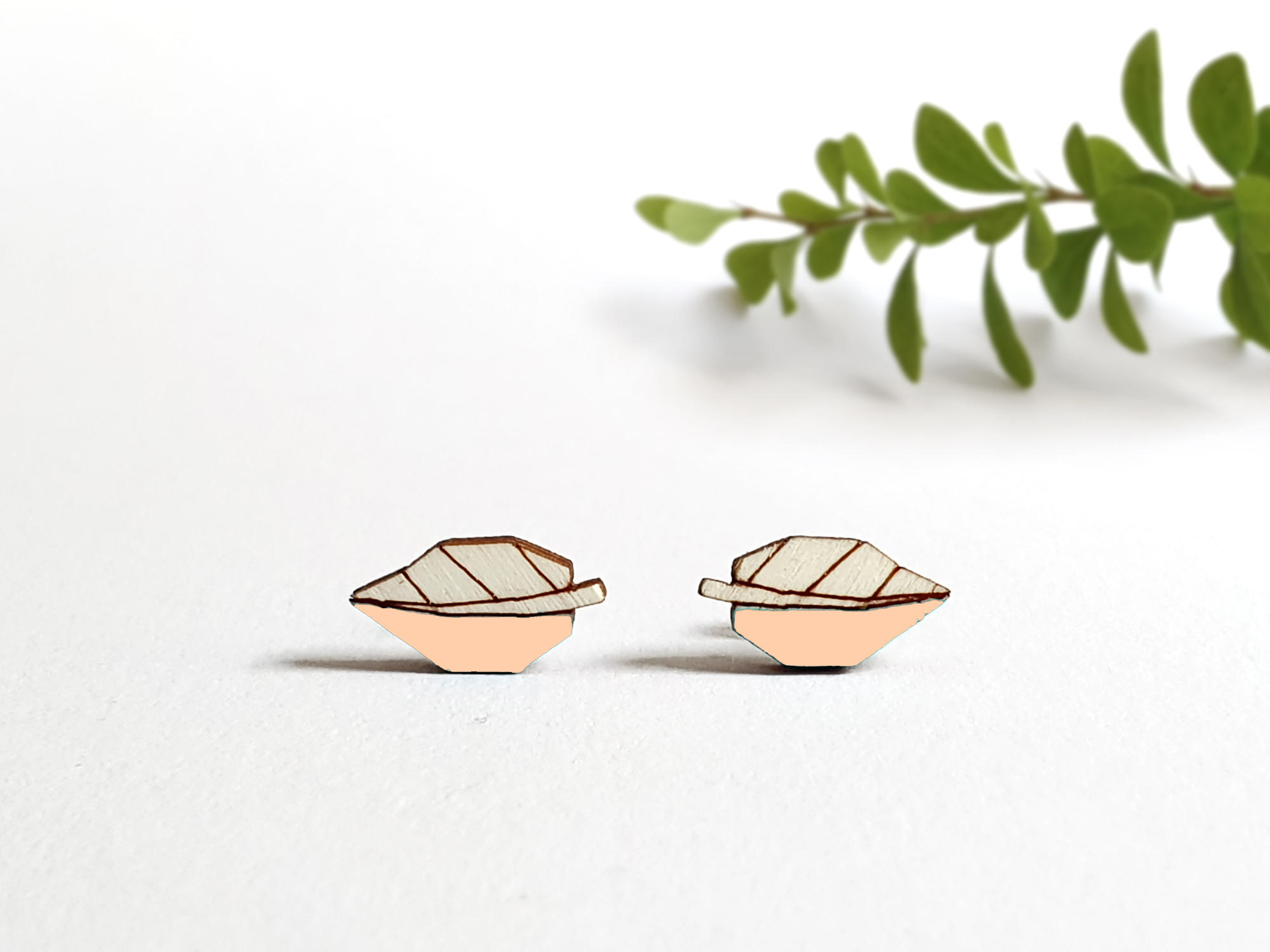Käsitööna puidust valmistatud kõrvarõngad Lehed aprikoosiroosa-KOHE LAOS-KIIRE TARNE