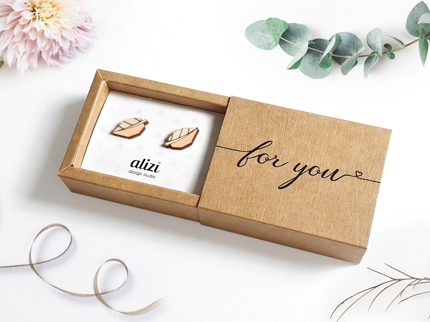 Kõrvarõngad on pakitud ilusasse tikutopsi süsteemil avanevasse pruuni karpi, mille peal on kiri for you- kaunis ning meeldejääv kingitus, mis meenutab sind kingisaajale iga kord, kui ta kingiks saadud kauneid ehteid kannab