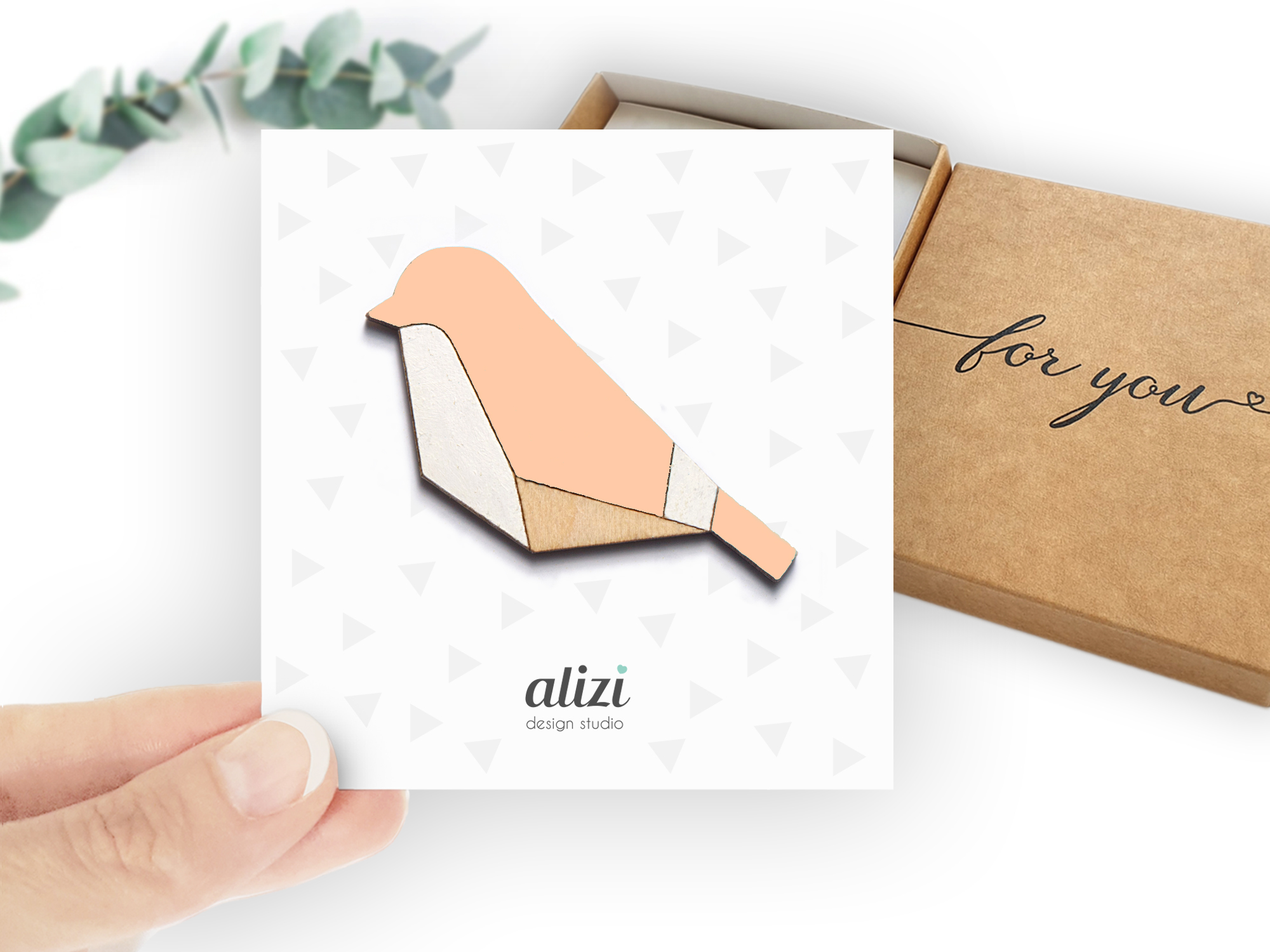 Käsitööna puidust valmistatud pross Lind aprikoosiroosa-KOHE LAOS-KIIRE TARNE