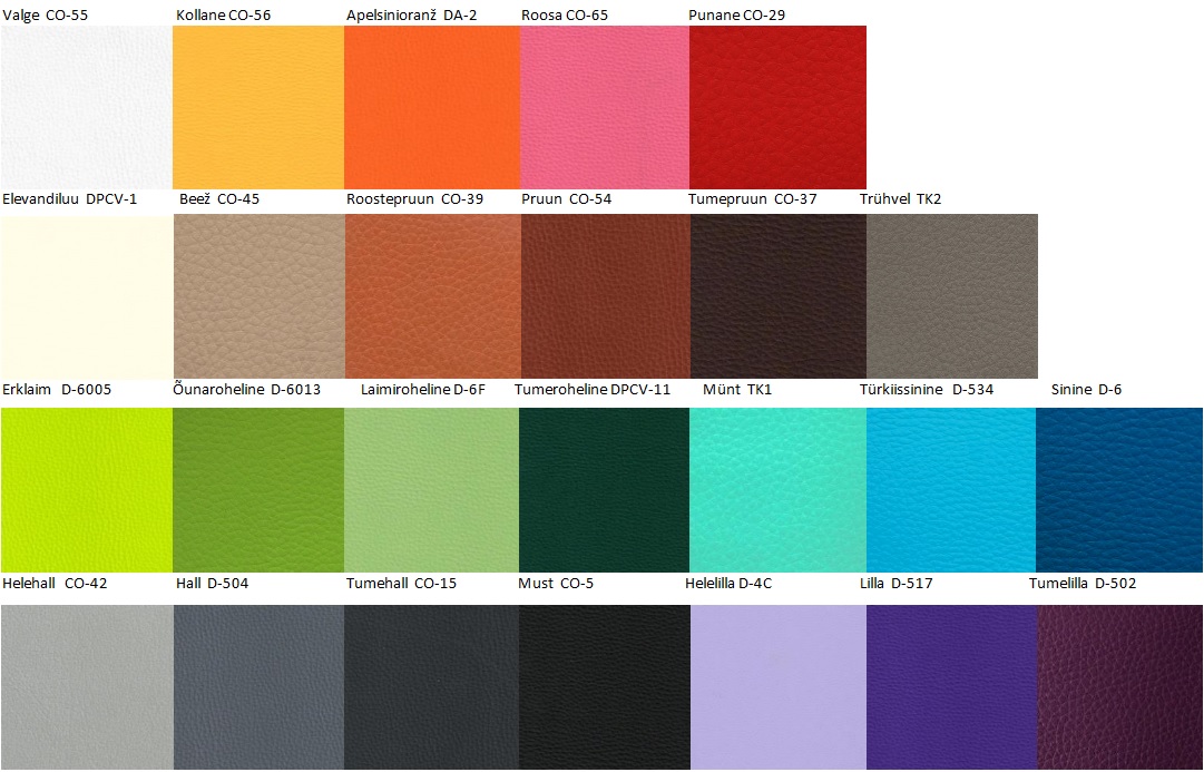Kott-tool Chill on saadaval 26-s erinevas kunstnaha värvitoonis – neutraalsetest toonidest kuni erksate värvideni.