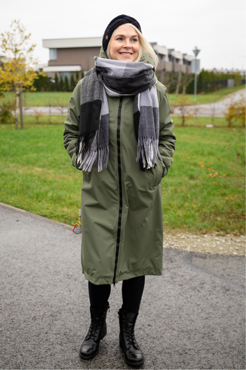 Kõrge kaelus ja kapuuts – hoiab kaela ja pea soojas ka tormise ilmaga
