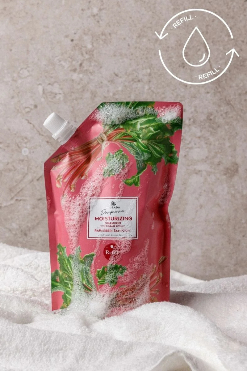 Niisutav looduslik šampoon kuivadele ja kahjustatud juustele – mahlase rabarberi aroomiga