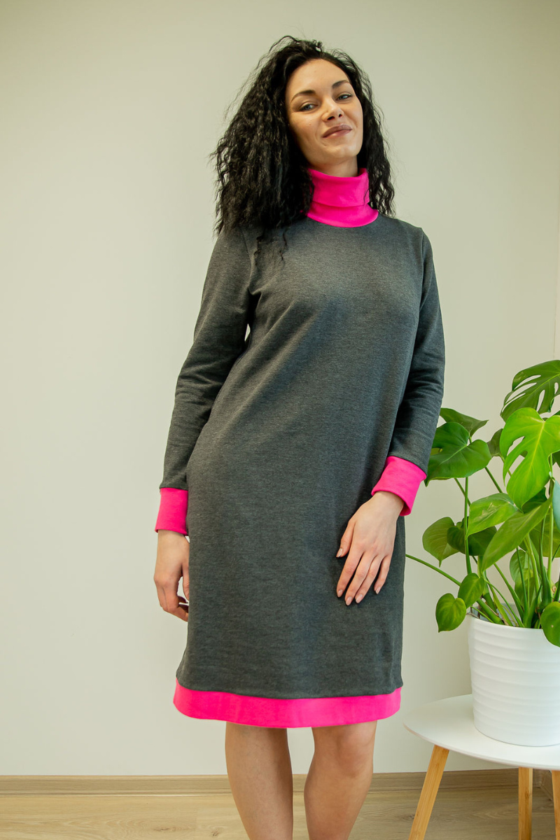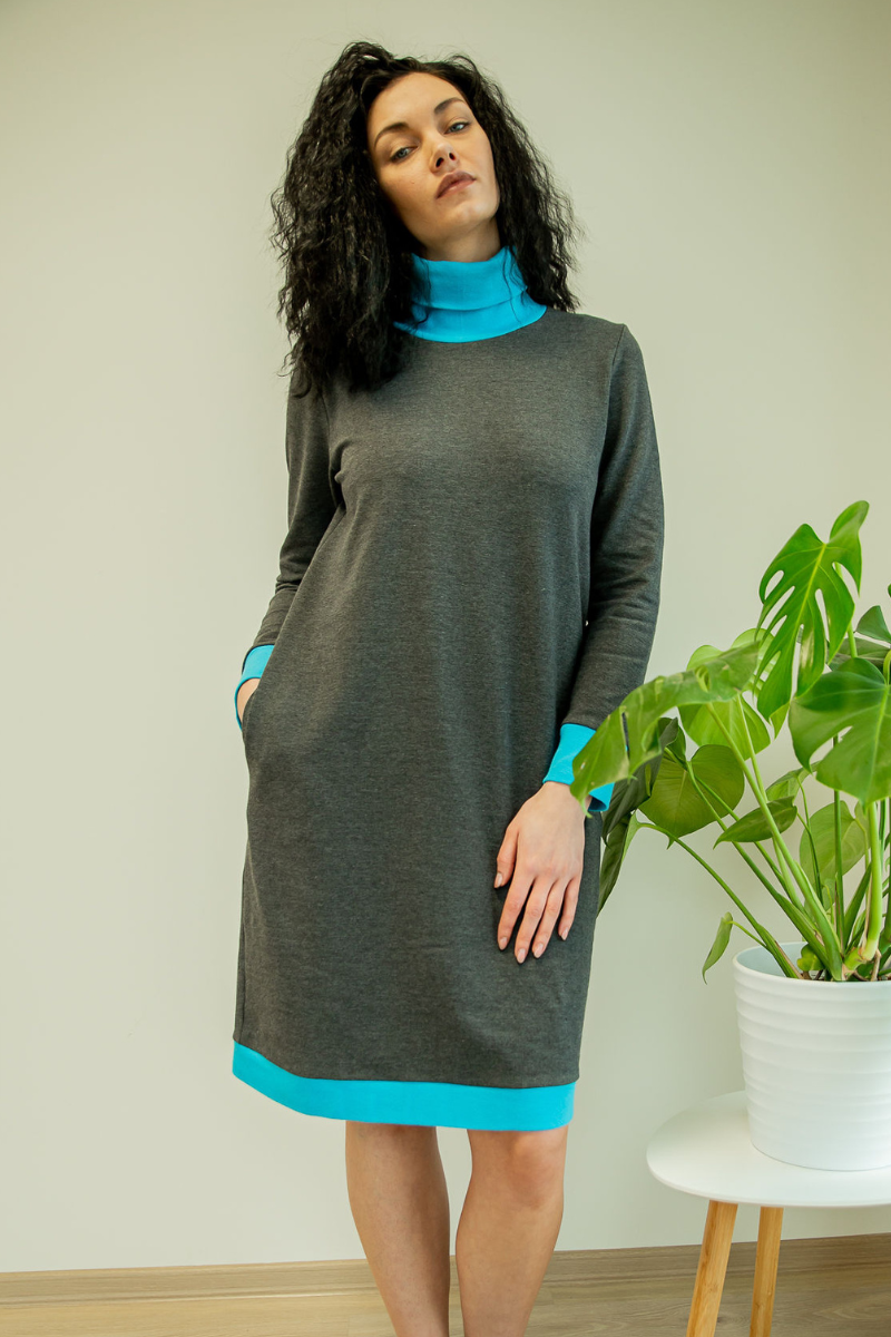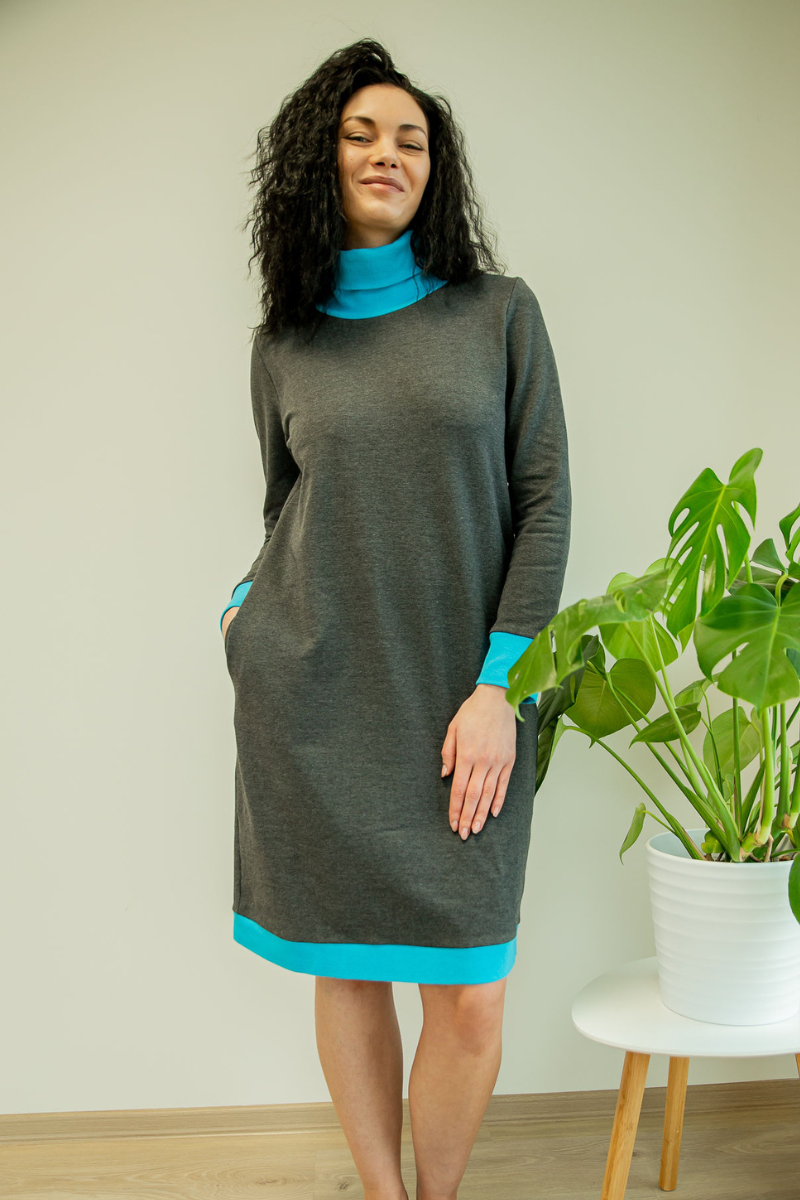 Mugav kõrge kaelusega tumehall taskutega pusakleit Sinisega-kohe laos suurus M(38-40)-HEA HIND