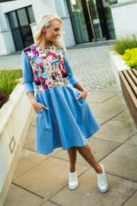 Efektse mustriga sinine taskutega kleit Glam-kohe laos viimane suurus M(38-40)-KLIENTIDE LEMMIK