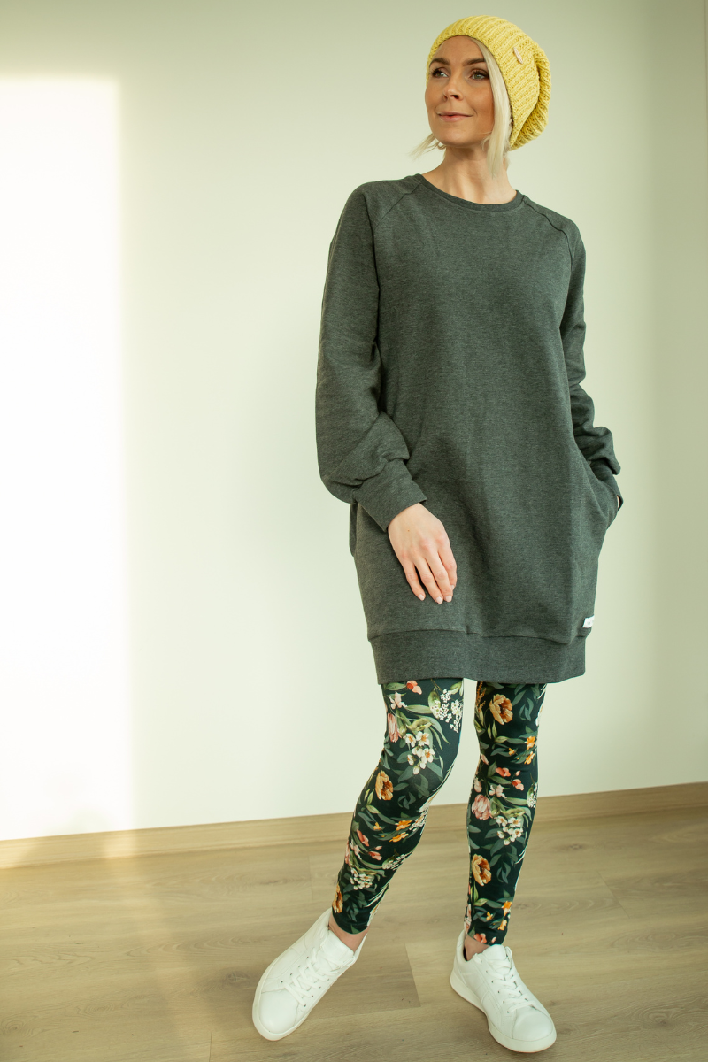Mõnus avarama lõikega pikem taskutega pusa on loodud selleks, et tunneksid end hästi nii kodus, vabal ajal, koeraga jalutades kui ka tööl