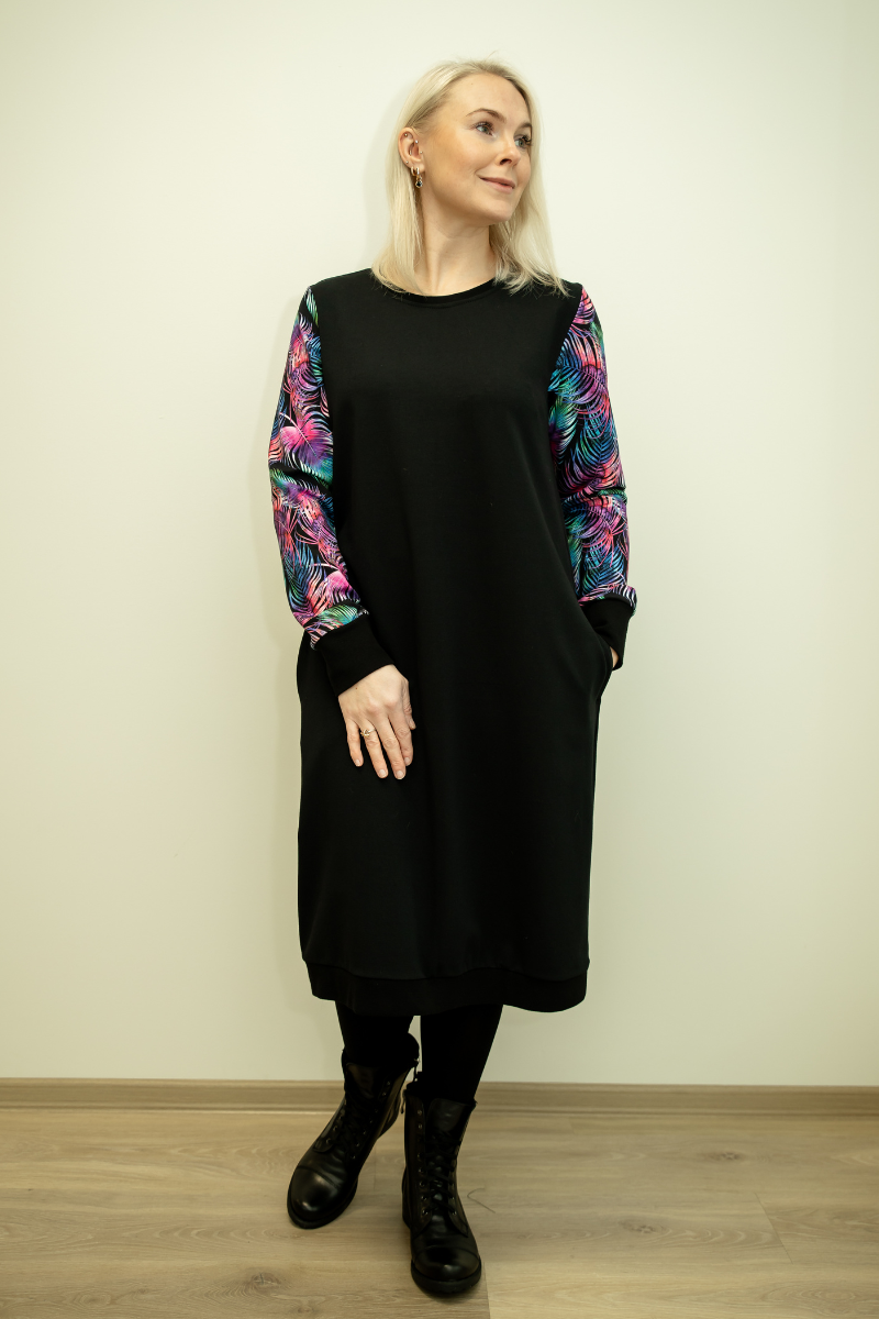 Stiilne must taskutega pusakleit Kirjud Suled-UUDIS- suurus M(38-40)-kohe laos-teised suurused tellimisel