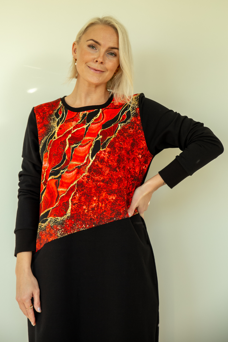 Stiilne must taskutega pusakleit Punane Marmor- Kohe laos suurus M-teised suurused tellimisel