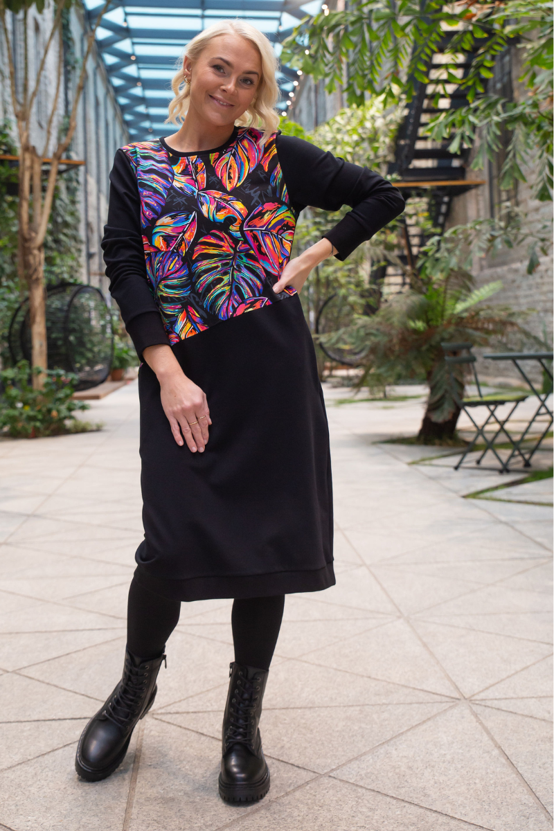 Stiilne must taskutega pusakleit Värviline Monstera- tellimisel