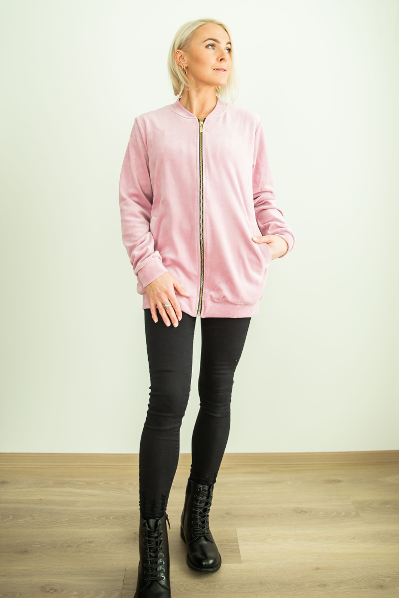 Stiilne pehmest samet kangast bomberjakk Roosa- KOHE LAOS SUURUS M(38-40)