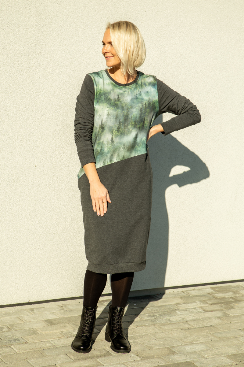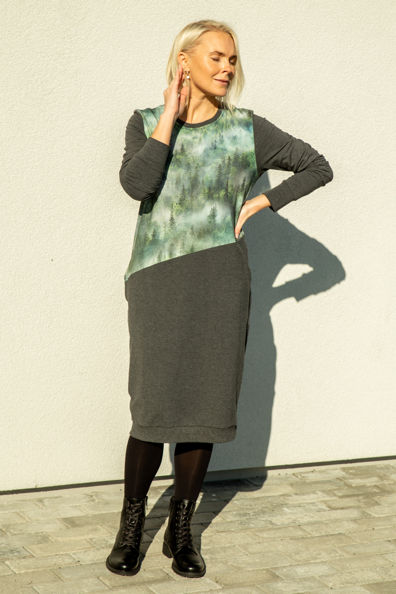 Mugav kõrge kaelusega tumehall taskutega pusakleit Fuksia – kohe laos suurus M(38-40) -HEA HIND