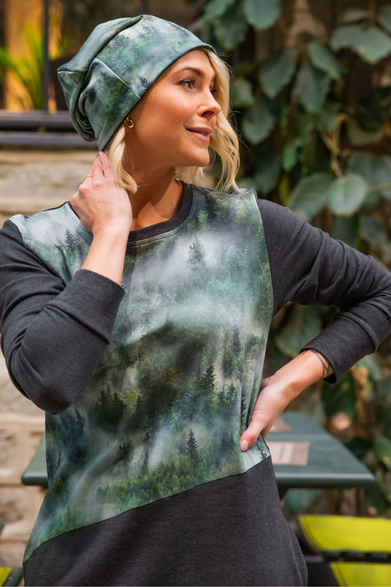 Pikem avara lõikega KÕRGE KAELUSEGA taskutega pusa Udune Mets-UUDIS-Kohe laos suurus M(38-40)