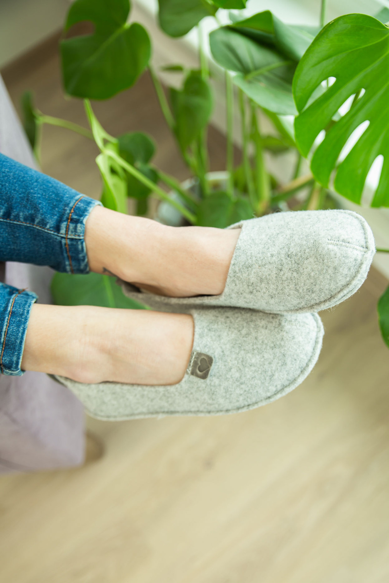 Need mugavad TOKU vildist toasussid on valmistatud taaskasutatud plastpudelitest, pakkudes jalale sooja ja toetades samal ajal loodussõbralikku eluviisi. Pehme vildipealne ja õhuke libisemiskindel kummitald muudavad need sussid ideaalseteks igapäevaseks toas kandmiseks.