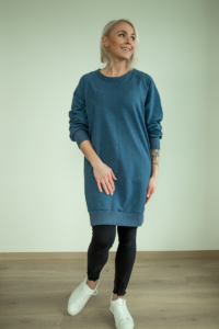 Pikem avara lõikega taskutega pusa keskmine sinine