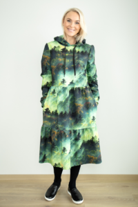 Avara lõikega pikem figuurisõbralik taskute ja kapuutsiga kleit Helen Rabamets-Kohe laos suurus XL
