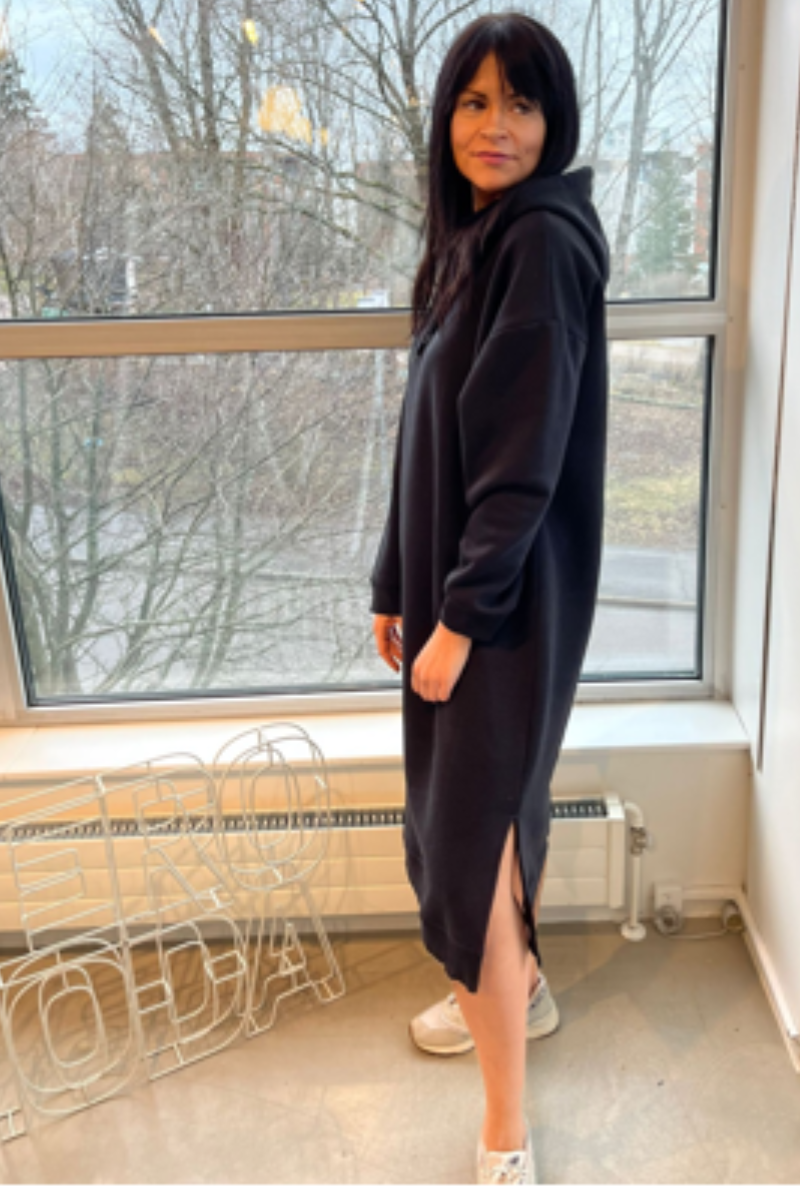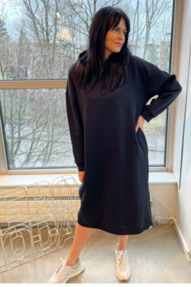 Pikem kleidi lõige ja pikad varrukad pakuvad mõnusat lisasoojust jahedamatel sügis- ja talvepäevadel, samas pehme puuvillane materjal teeb kleidi kandmise eriti mugavaks ka terve päeva vältel. Kapuuts ja kaks praktilist taskut lisavad kleidile sportlikku iseloomu ning igapäevast kasutus mugavust.