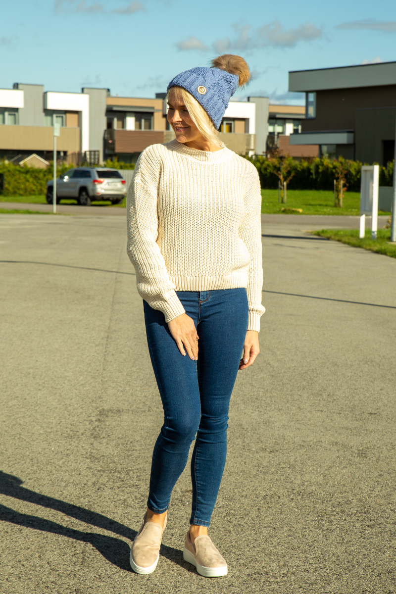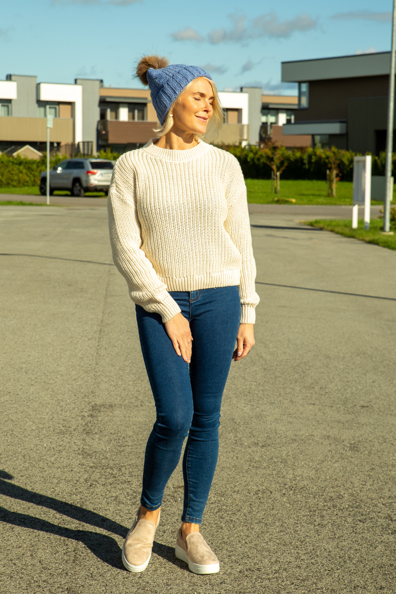 Klassikalise lihtsa disainiga Hilda ühetoonilist kampsunit on mugav sobitada nii seeliku, kui ka pükste peale.