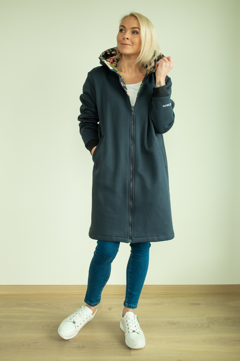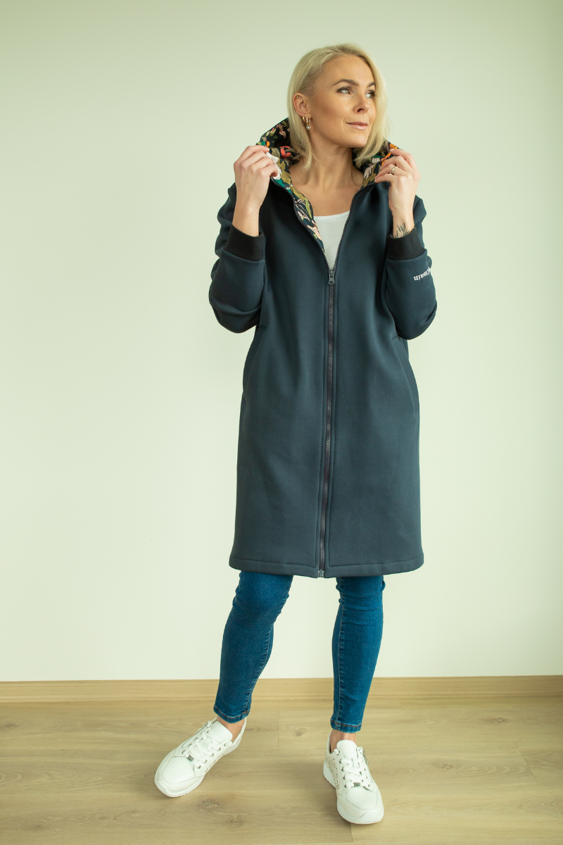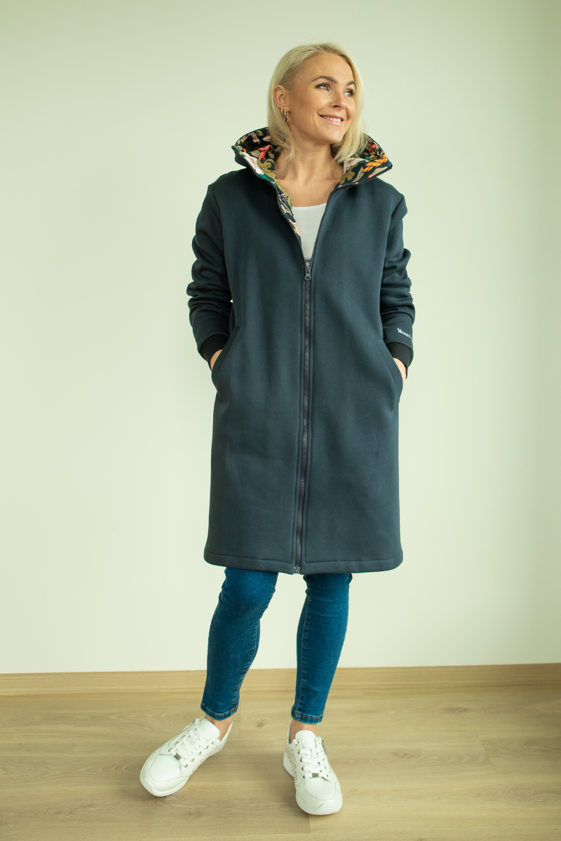 YEMI DISAIN petroolsinine pikk kapuutsiga pusa-jakk – VIIMANE XL KOHE LAOS