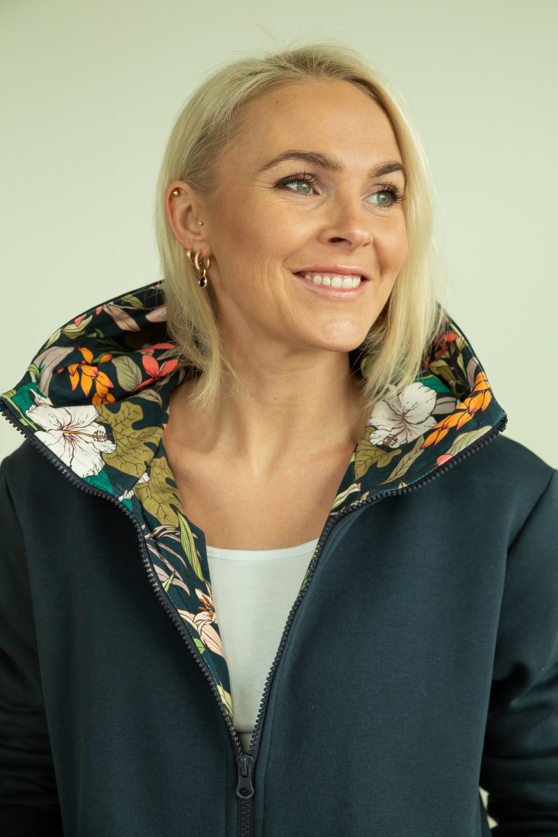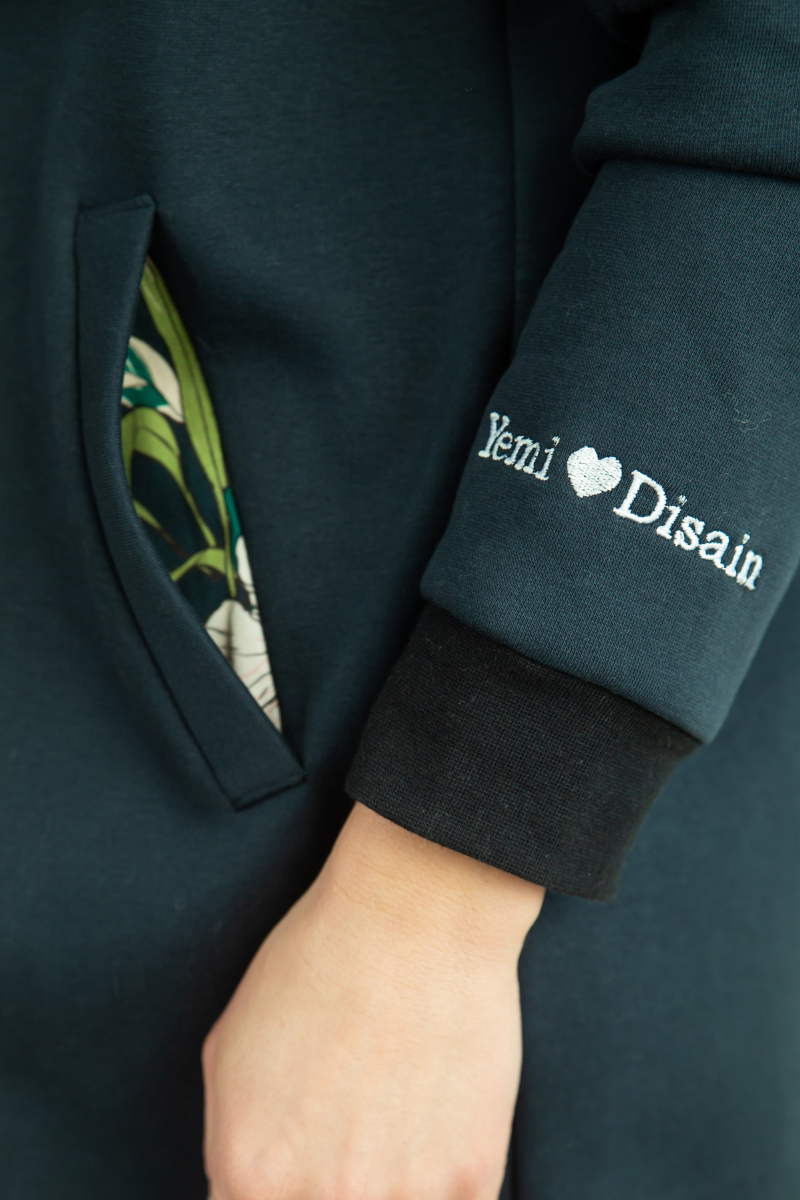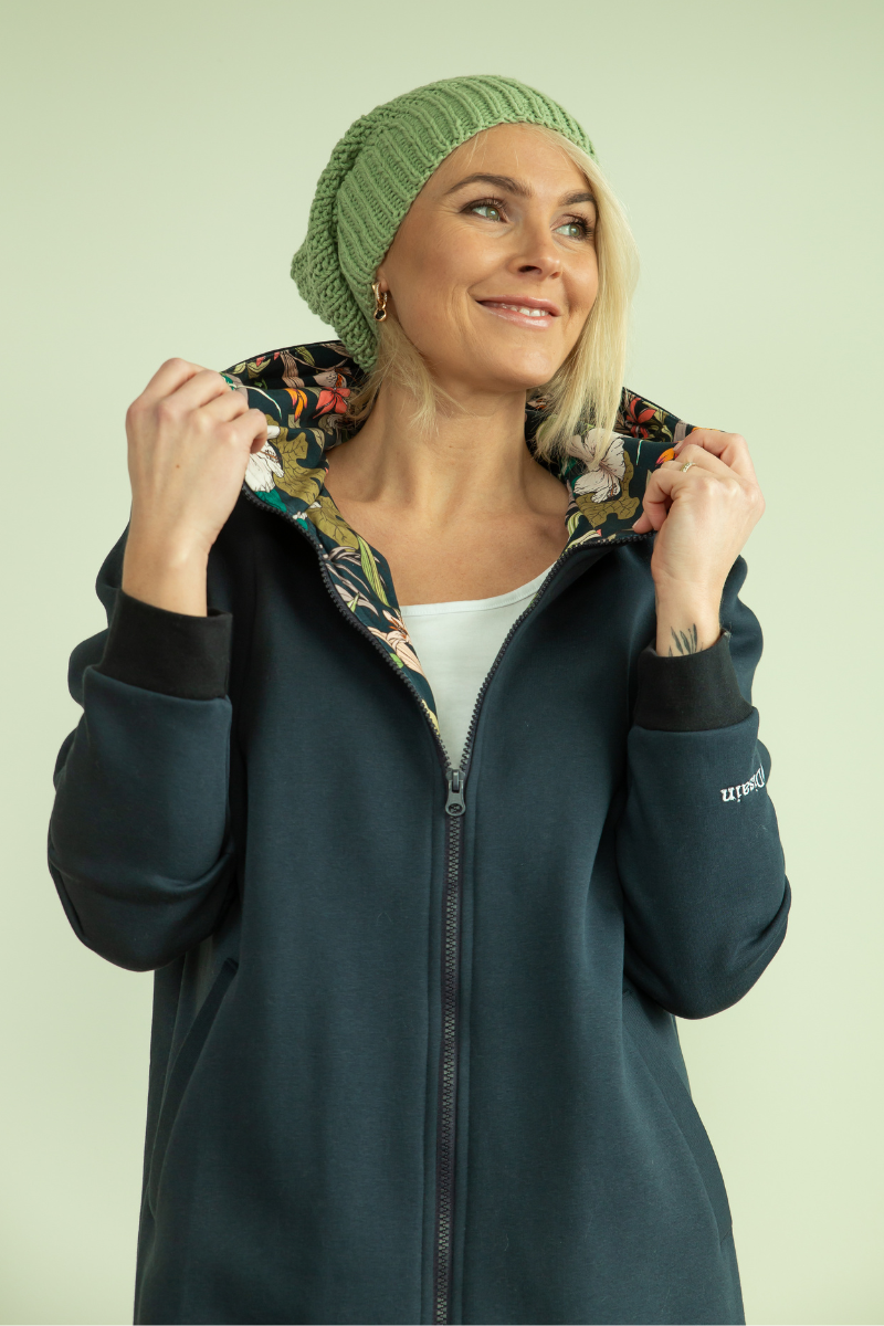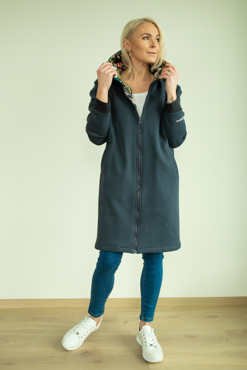 YEMI DISAIN petroolsinine pikk kapuutsiga pusa-jakk – VIIMANE XL KOHE LAOS