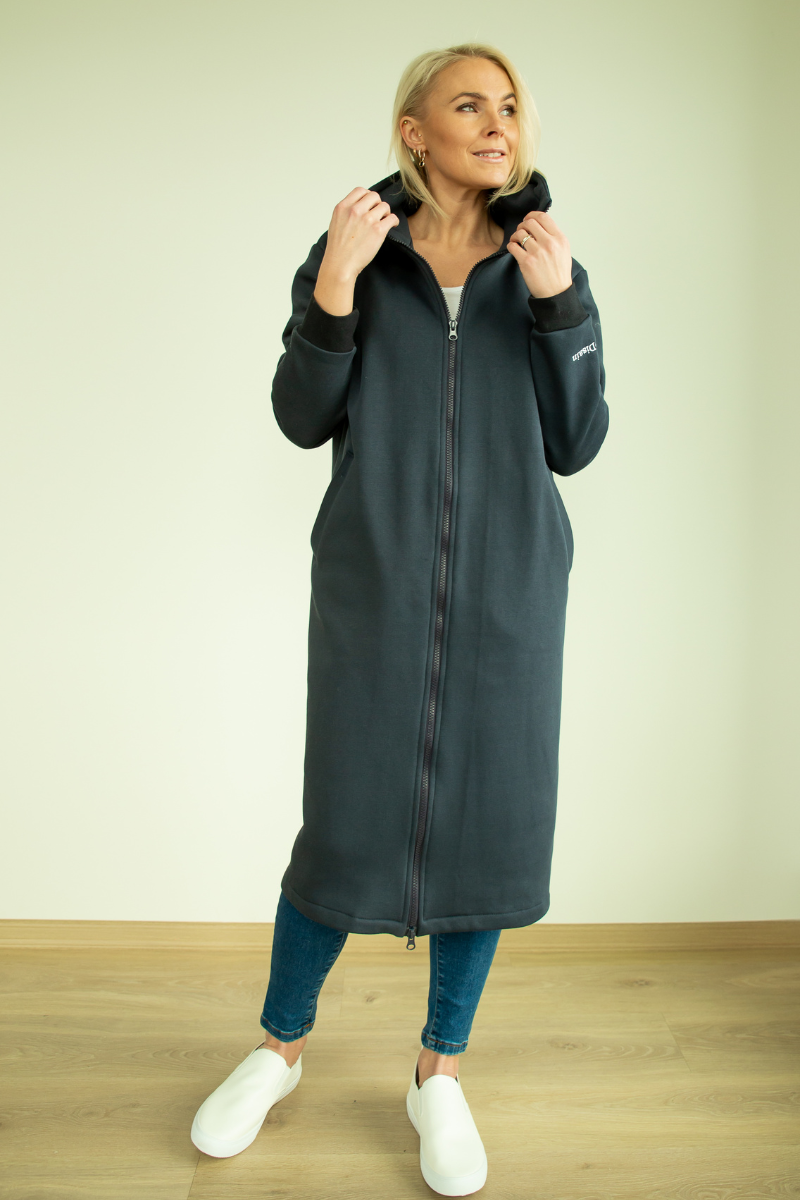 YEMI DISAIN petroolsinine pikk kapuutsiga pusa-jakk – VIIMANE XL KOHE LAOS