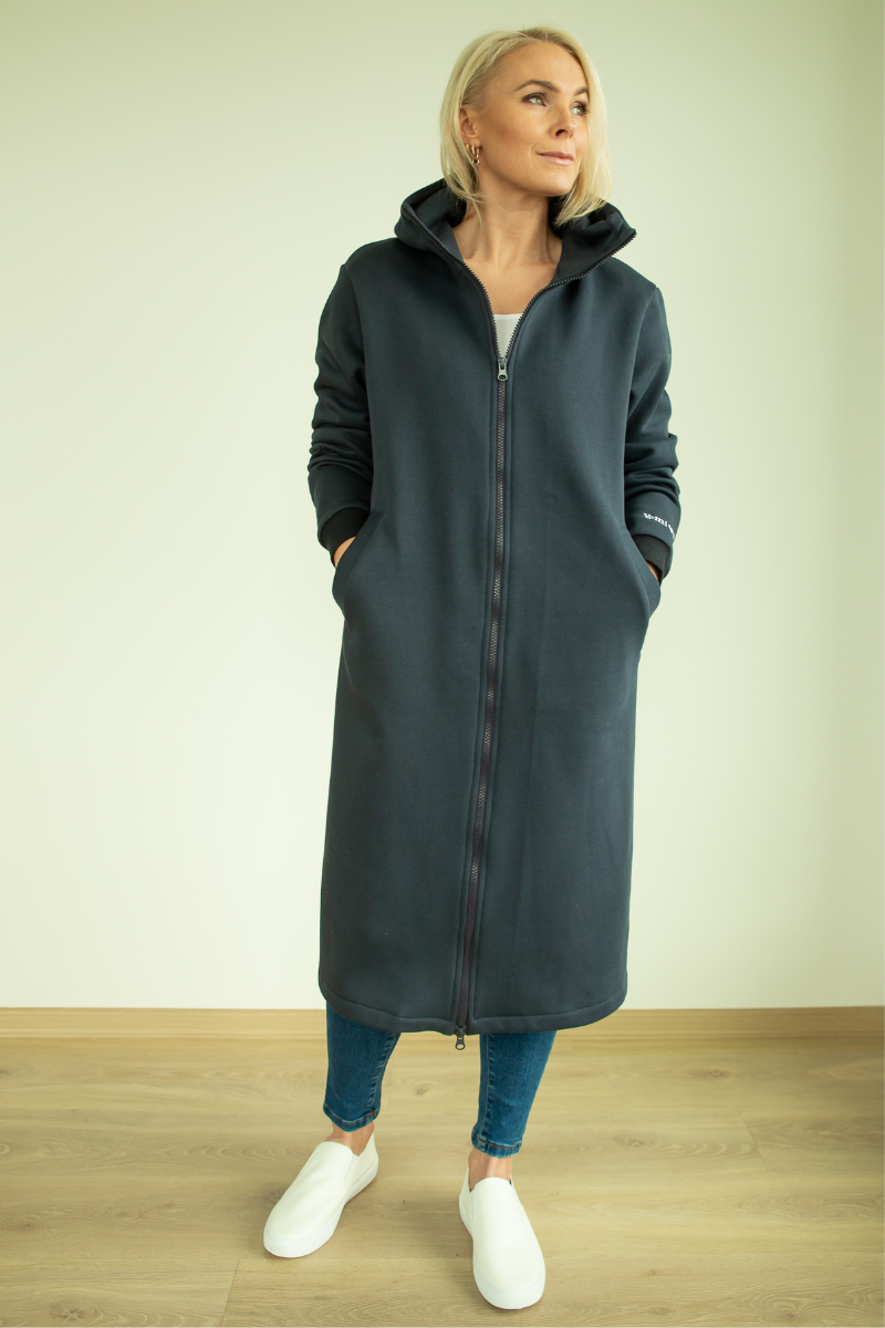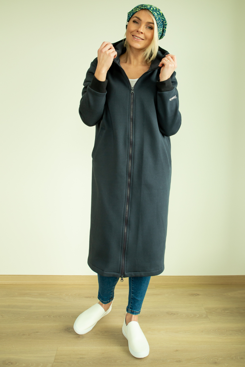 YEMI DISAIN tumesinine pikk kapuutsiga pusa-jakk- XL ja XXL-KOHE LAOS